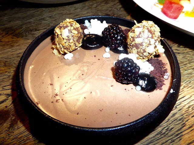 Dessert- Fruit Salad- Mango cream, watermelon, watermelon caviar, melon, pineapple, nectarine, melon and peach sorbet- , Chocolate Mousse -Chocolate truffles, Tonka and Coffee cream, Pina Colada caviar, Oreo rumble and Blackberries, scrumptious and mouthwatering! -, Apple and Honey - apple cream Smith apples granita, apple sorbet, Meringue powder, Twill apples, and honey Timin Sauce, pure perfection!
