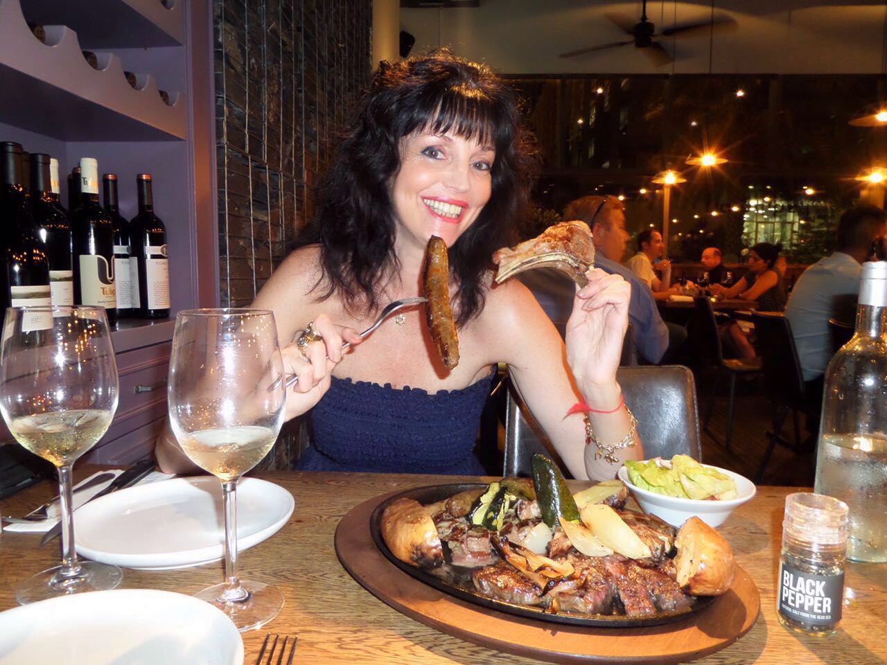 For our main dishes we got a big platter stacked with a variety of delicious meats! Ribs, Entrecote ,Chorizos and Sinta! All fresh, melt in your mouth, remarkable meat, and did we mention it's all kosher!! AMAZING!!! All cooked perfectly medium rare!